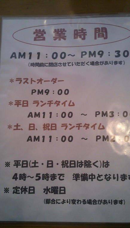 メニュー表はなく、店内の張り紙をみての注文になります。