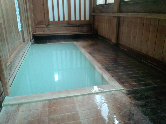 お湯のほうは源泉かけ流しで青白く透き通っており、鮮度のよさを感じさせます。