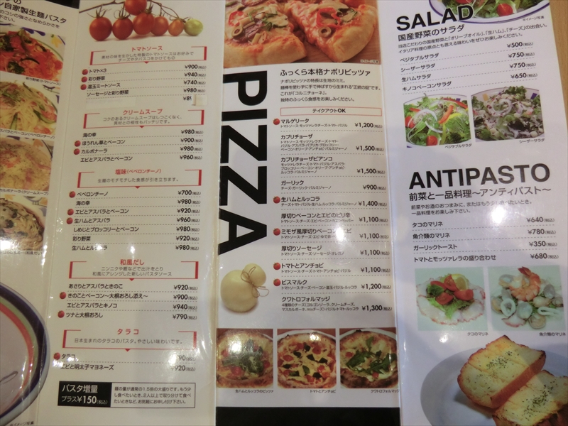 メインはパスタとピザで種類も豊富です。