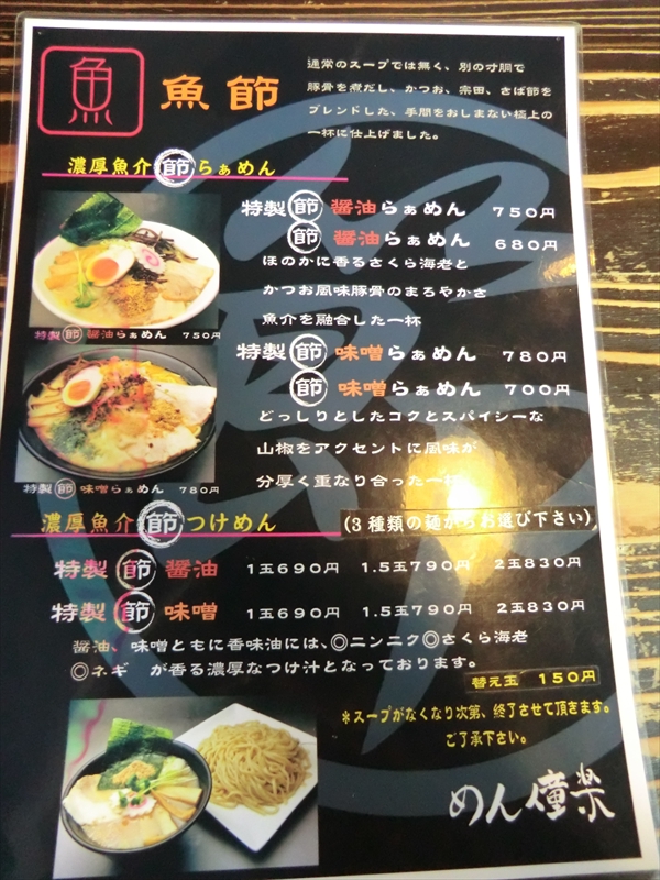 メインのらぁめんメニューの他、いつの間にか節系のメニューも増えておりました。