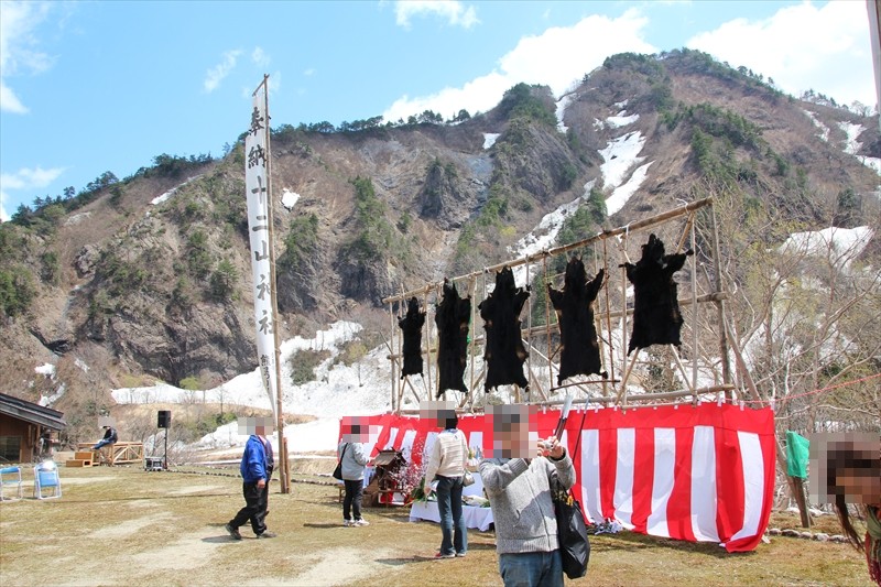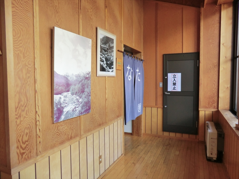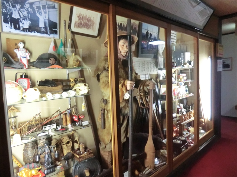 浴場へ向かう通路にはマタギの資料が展示されていました。