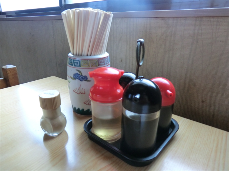 焼きそばには薄く塩味がついているだけで、お好みでテーブルにあるウスターソースで味付けします。
