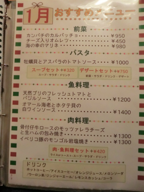 平日のランチタイムのためか、ランチセットとドリンクのメニューしかありません。