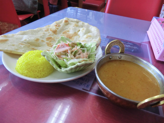 サフランライスは小盛りですが、ナンはなかなかビッグサイズなのが嬉しいですね。