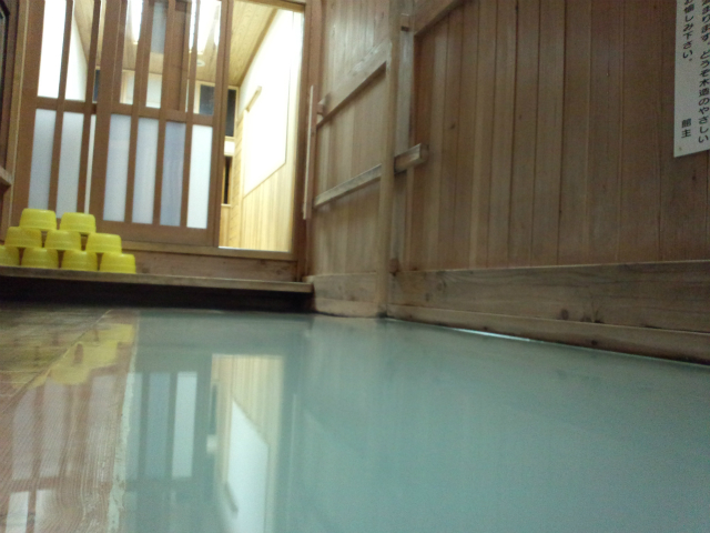 湯船からはすのこの下から自噴する温泉が静かに溢れていました。