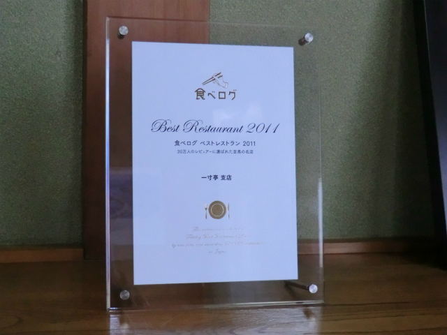 店内にはたべログの優秀店に送られるらしい楯が置いてありました。