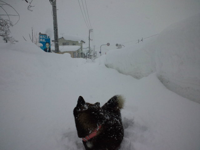 歩道は除雪が追いついていないのか20~30cmは積もっており、ワンコの散歩も一苦労です。