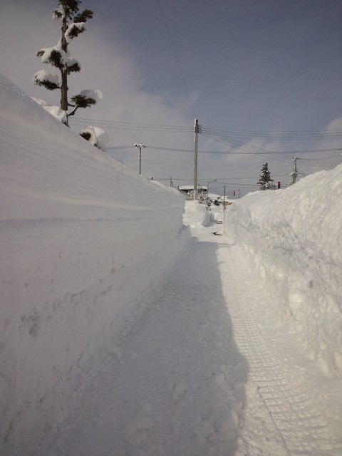 また道路の除雪で歩道には高さ1mほどの雪の壁が発生。
