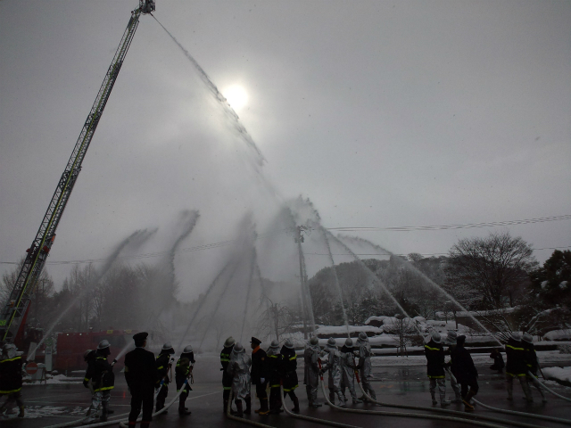 寒い中の放水演習、お疲れ様でした。