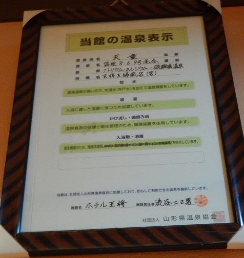 天童温泉のホテル王将へ日帰り入浴に行ってきました。