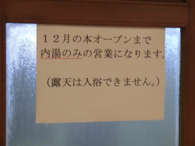 露天風呂は12月の本オープンまで入れないのか、残念。
