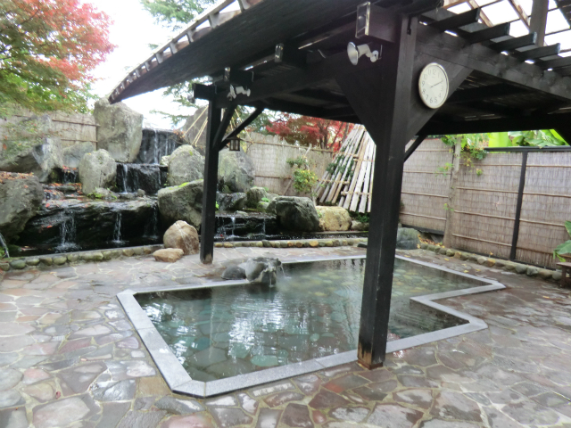 惜しむらくは全面仕切りが立ててあるため露天風呂いう感じが全くしないこと。