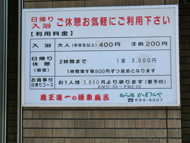 入湯料:400円(回数券12枚で4000円)