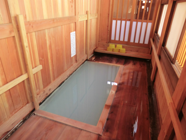 本日のお湯は白く濁っており底のすのこは見えません。