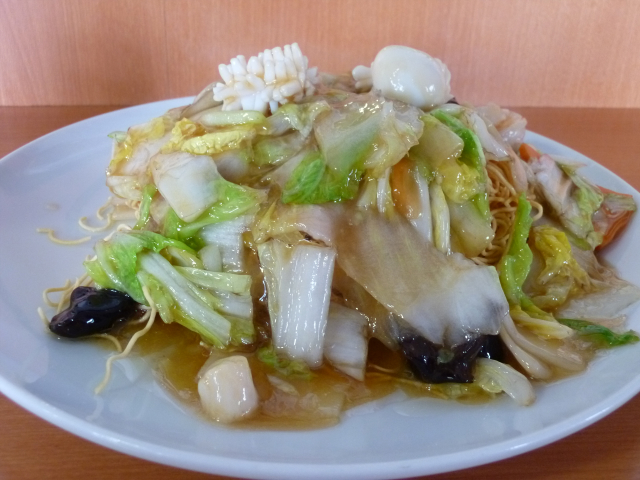 五目あんはイカやホタテ、海老もタップリ入った海鮮風です。