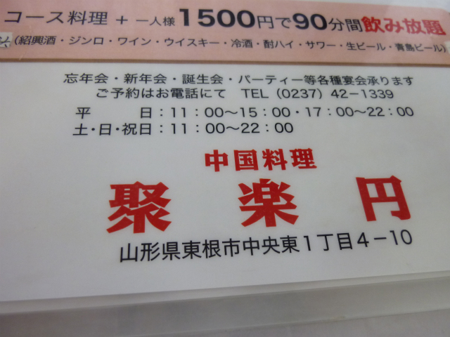 若松に行った勢いで東根市にある中華料理聚楽円さんまで行ってきました。