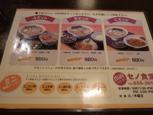 裏面にはセットメニューもありました。
