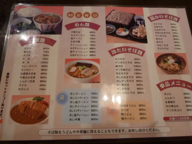 やはり丼物を中心にしているようですが、そばやラーメンなど麺類も豊富です。