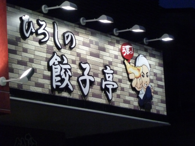 デカデカとひろしの餃子亭と書かれた看板があります。