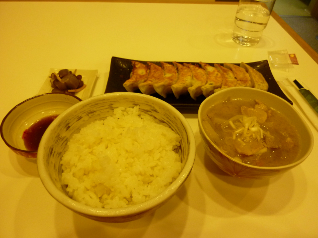 ご飯に餃子、豚汁とお漬物が付いて480円+大盛り200円。