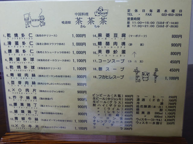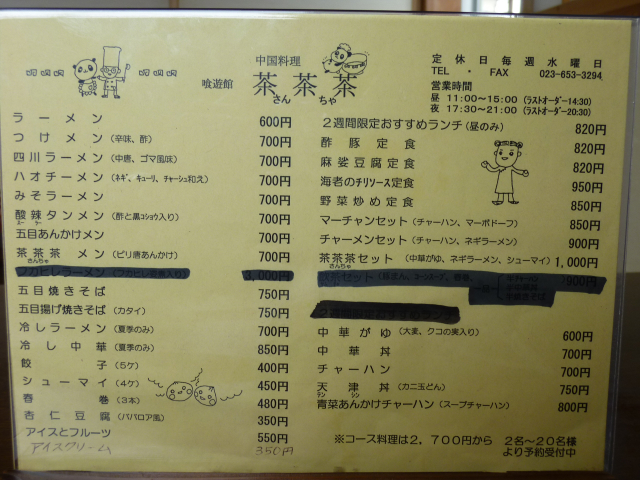 急に五目あんかけ焼きそばが食べたくなってしまったので、天童にある中華料理の茶茶茶(さんちゃ)さんへ行ってきました。