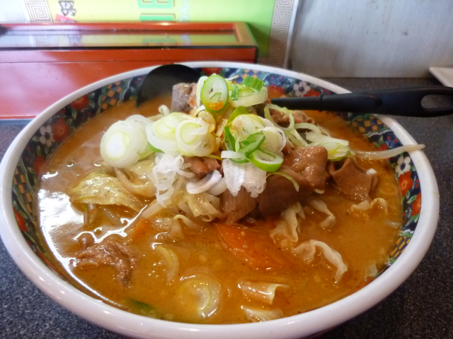 スープはピリ辛で、味噌ながらしょっぱさ控えめでコクがあります。