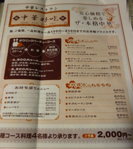 メニュー写真は撮りきれなかったので、代わりに貰ったチラシを載せておきます。