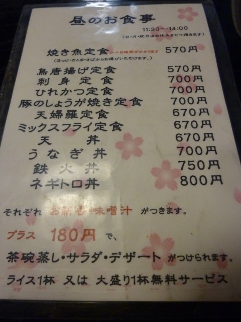 こちら昼はお食事処、夜は居酒屋になっているようです。
