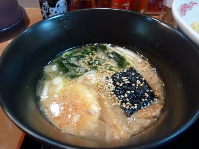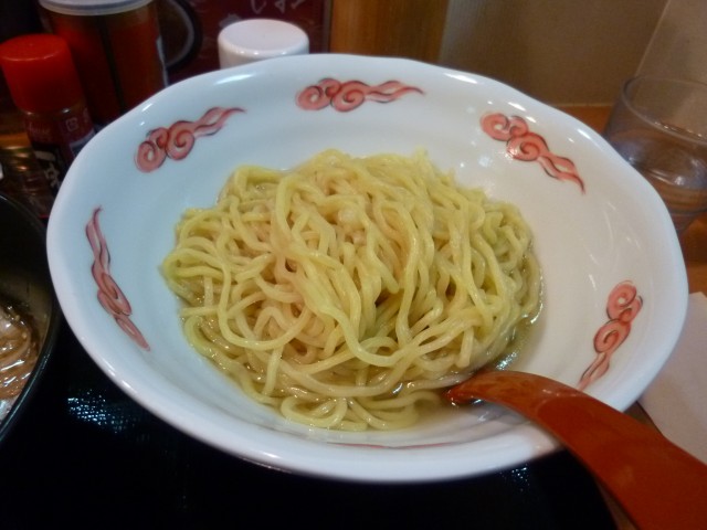 スープだけをレンゲですするなら濃さは十分でしたが、麺が少しお湯に浸かっていることもあり、つけ麺として食べるには味が薄かったのかも。