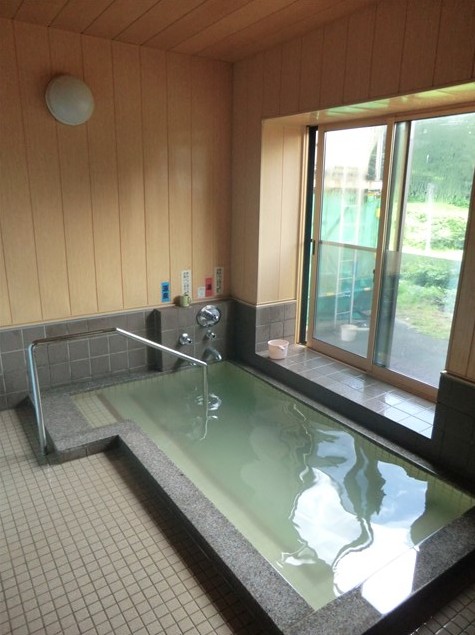 タイル張りの浴槽には薄くグリーンに濁ったお湯が湛えられています。