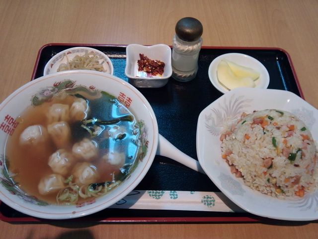 ワンタンスープに半チャーハンが付いて680円。