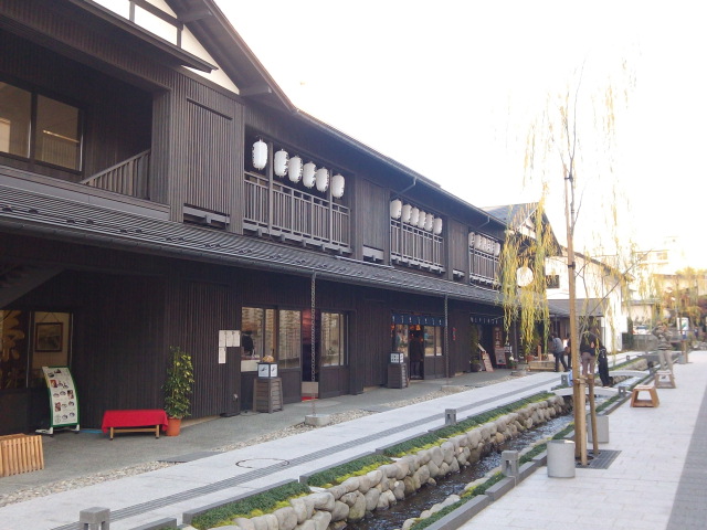 用水路がメインで、その周囲に日本家屋風の店舗が並んでいます。