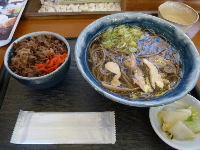こちらが噂の牛めし(小)と冷たい肉そばのセット。