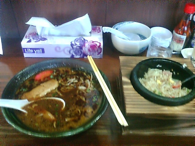 黒味噌ラーメンと石焼チャーハンのセットを注文。
