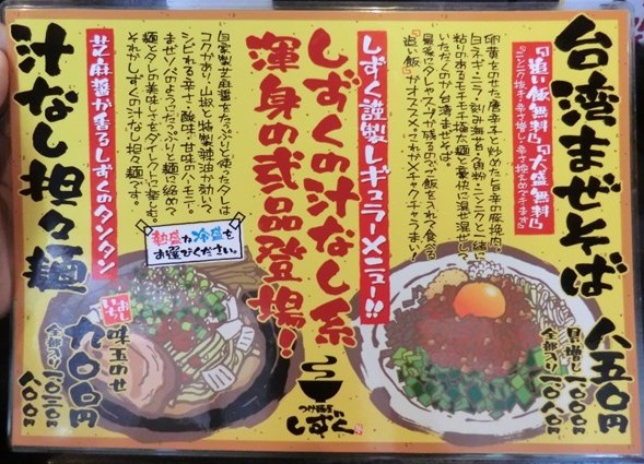 台湾まぜそばや汁なし坦々麺も興味を引きますが、汗で大変なことになりそうなので今回はパス。