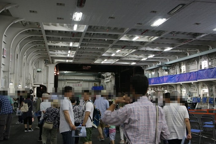 いせではなんと、ヘリ用のエレベーターを使って甲板まで上がることができました。