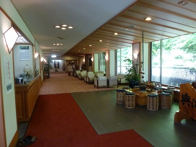 中に入ると女将さんらしい人がラウンジを掃除中。