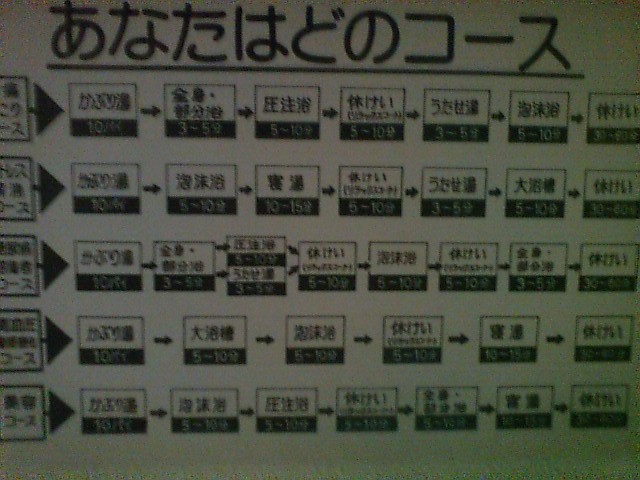 隅のほうには打たせ湯、圧力湯、泡風呂もあった。