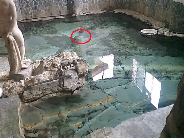 明らかに掃除のしづらい豪快な岩風呂、お湯を抜いてきれいにしろとはさすがに言えない。