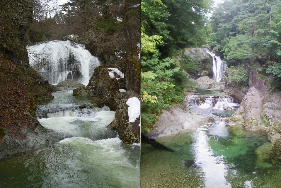 雪解け水か、昨日からの雨のせいかは分からないが凄い水量になってます。