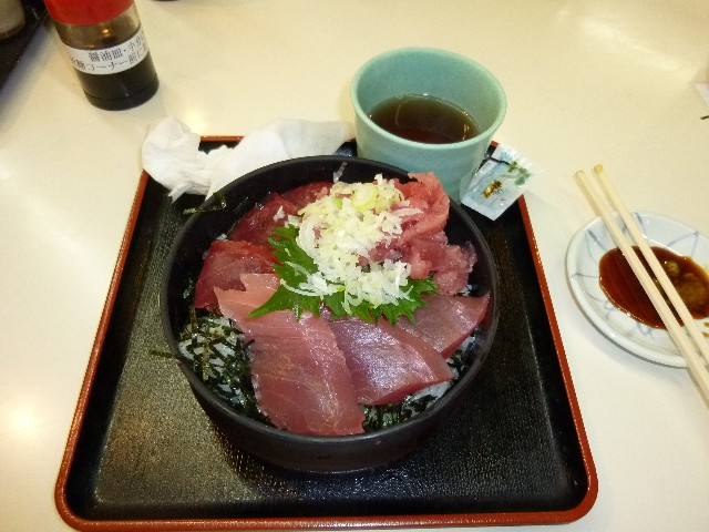 クロマグロ漁大勝利記念にマグロ三色丼を注文。
