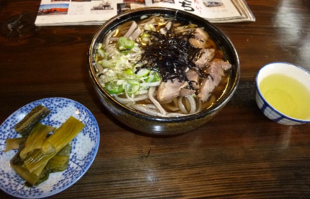 太目のそばと味の染みこんだ鶏肉がよく合います。