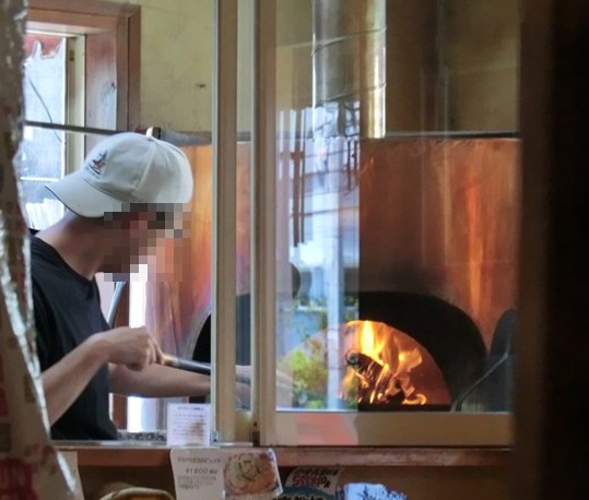 するとピザ担当の料理人がおもむろに、メインのキッチンから石釜のあるエリアに移動。