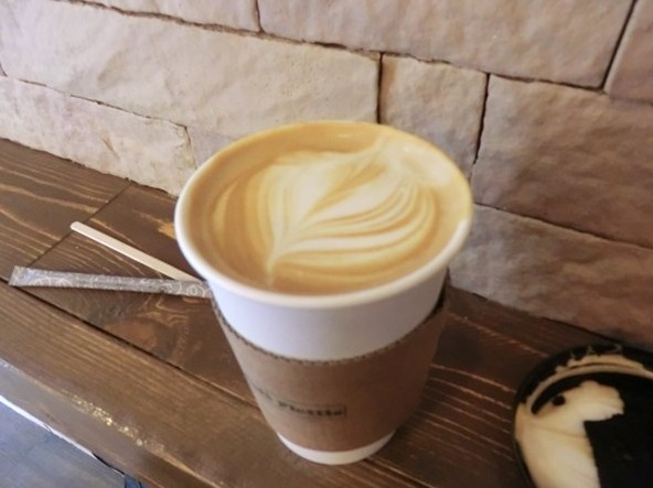 せっかくきれいなラテアートだったのに、ふたのおかげで少し崩れてしまいました。