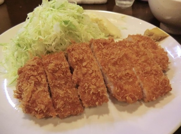こちらのトンカツ、標準的な大きさで衣もカラッと揚がっております。