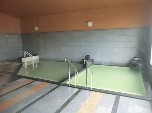 お湯は薄いグリーンに色付き、少し濁りが見られます。