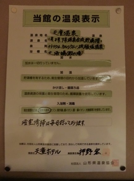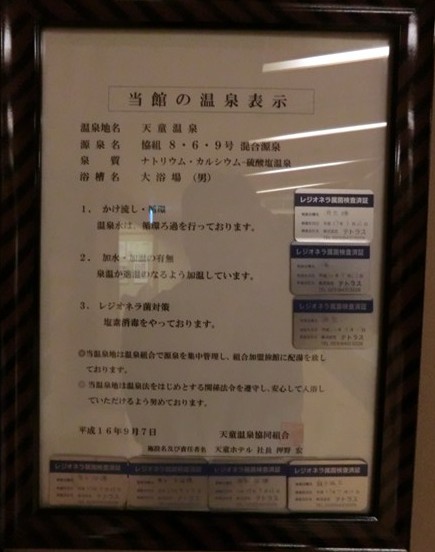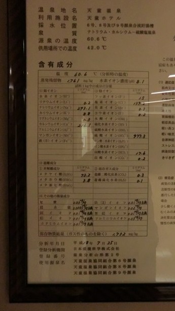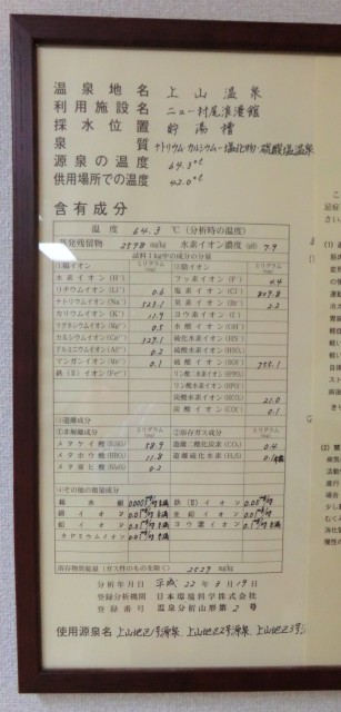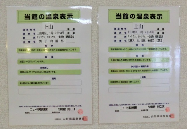 温泉成分表と温泉表示。