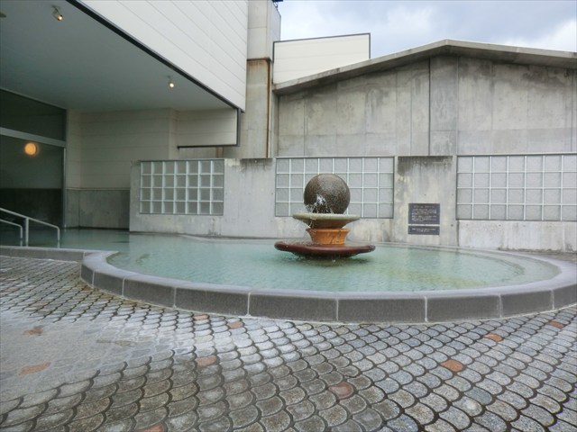 大浴槽の回転玉石は面白いモニュメントですね。