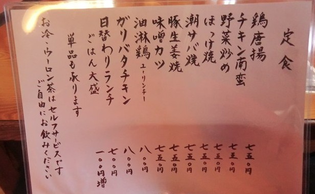 日替わり定食はお店の前の看板に掲示してありました。