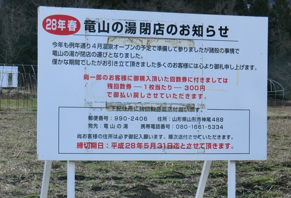 以前も閉店のお知らせが載っていた竜山の湯のサイトが更新されていました。